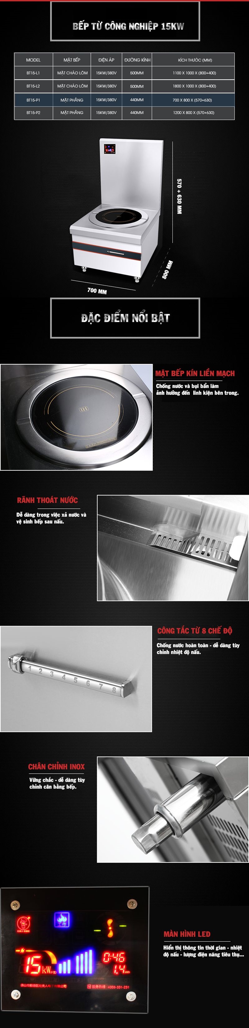 Ưu điểm của bếp từ công nghiệp đơn 15KW mặt phẳng .