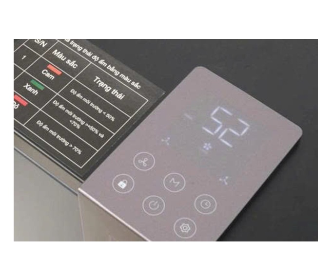 - Bảng điều khiển cảm ứng thông minh với màn hình hiển thị độ ẩm theo thời gian thực.