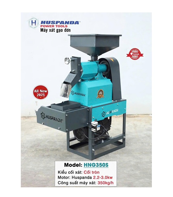 Máy Xát Gạo Đơn Huspanda HNG350S là một dòng máy nông nghiệp đa năng, chuyên dùng để xát lúa thành gạo và nghiền nông sản thành cám phục vụ cho nhu cầu của hộ gia đình, trang trại nhỏ hoặc cơ sở kinh doanh quy mô vừa.