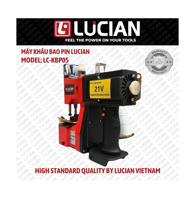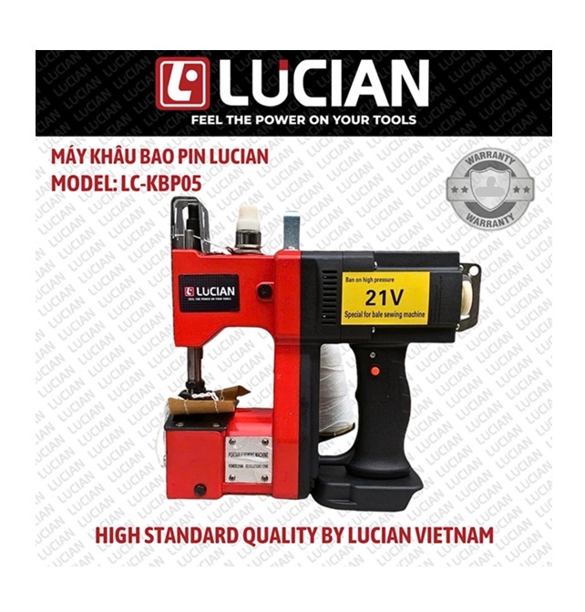 Máy khâu bao pin Lucian LC-KBP05 là loại máy khâu bao cầm tay chạy bằng pin (21V), được thiết kế để thay thế cho các máy khâu bao cồng kềnh, sử dụng điện trực tiếp.